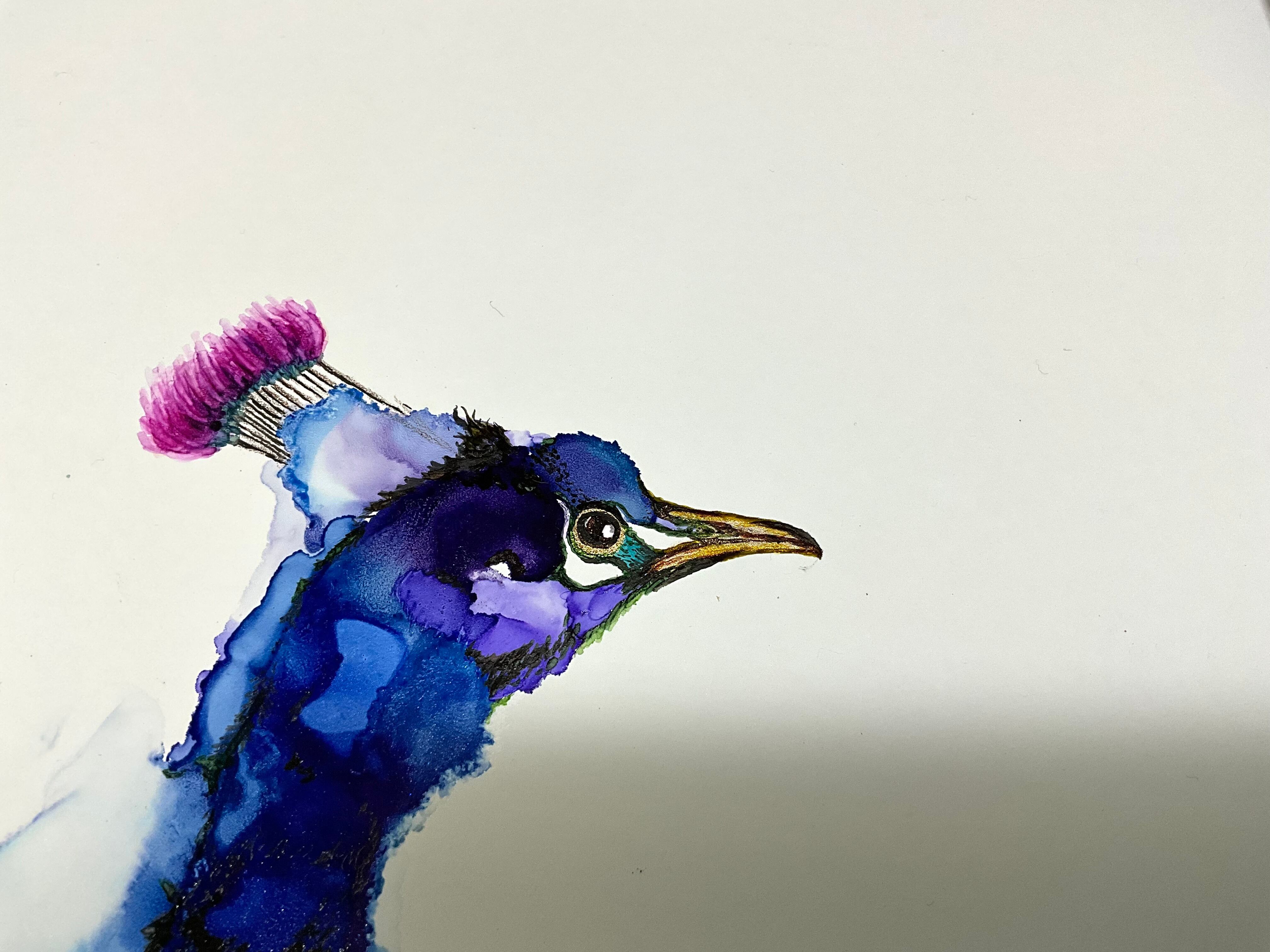 極彩の羽根を纏う孔雀を描きながら、私は魂の世界に棲む極楽鳥を思い描いていました。